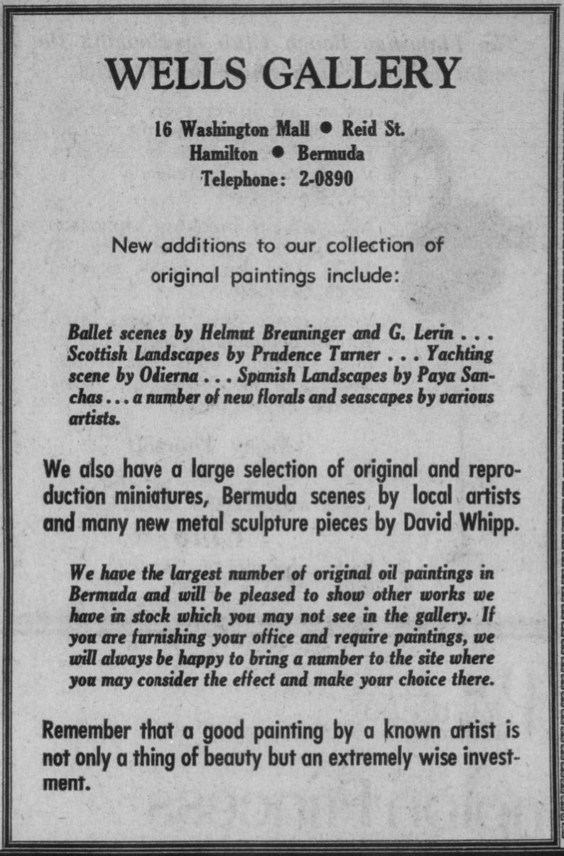 In the Wells Gallery in Hamilton, Bermuda, all his exhibited work was sold on the first day.