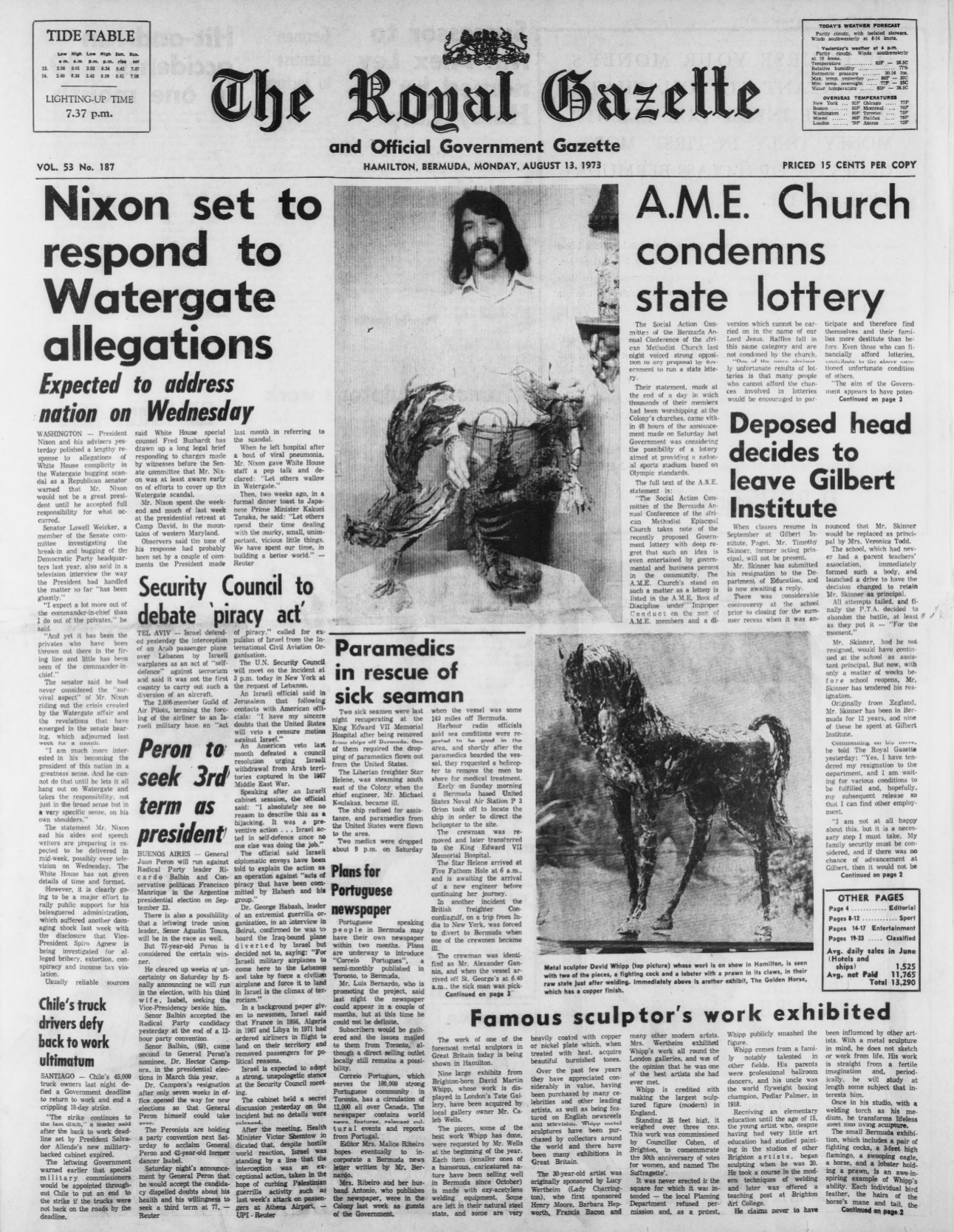 The Royal Gazette, Bermuda 13th August 1973